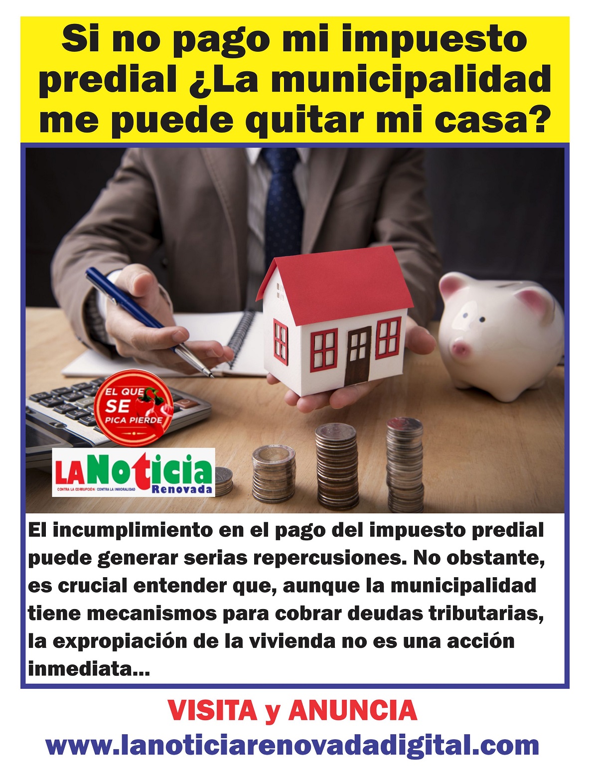 La respuesta directa es no, la municipalidad no puede quitarte tu casa de manera inmediata por tener una deuda de impuesto predial. Sin embargo, si no se atiende la deuda, se puede activar un proceso de cobranza coactiva.