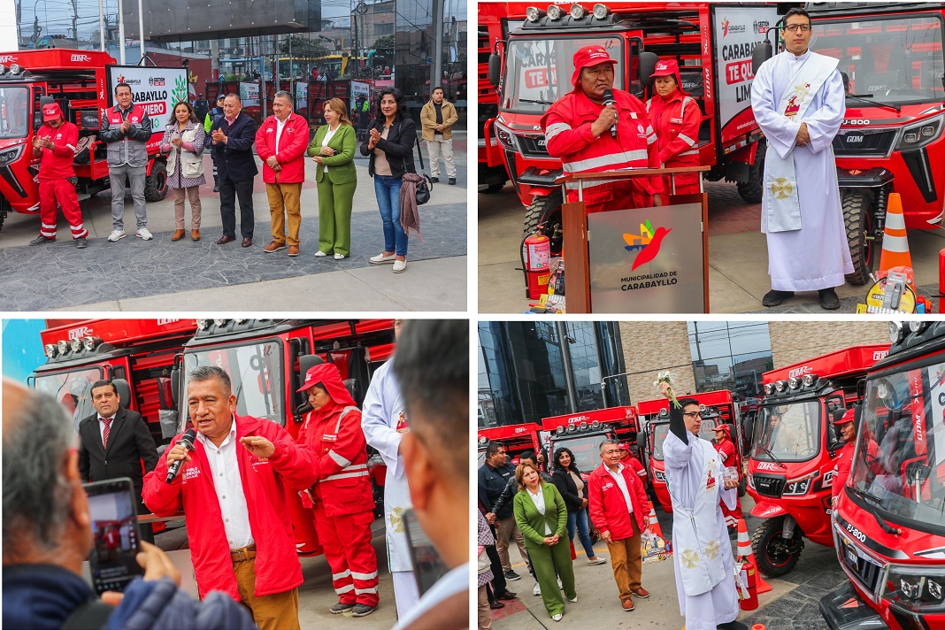 El alcalde de Carabayllo, Pablo Mendoza Cueva, presento 15 motofurgones para reforzar el servicio de limpieza pública de diferentes sectores del distrito.